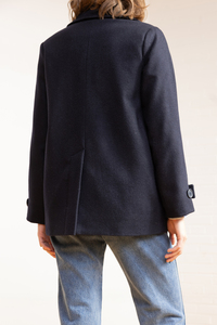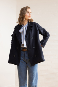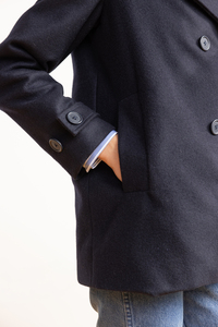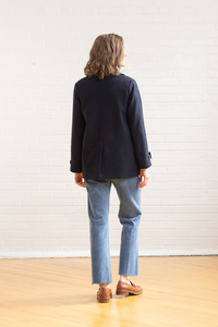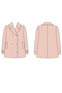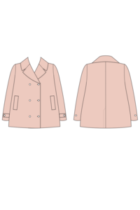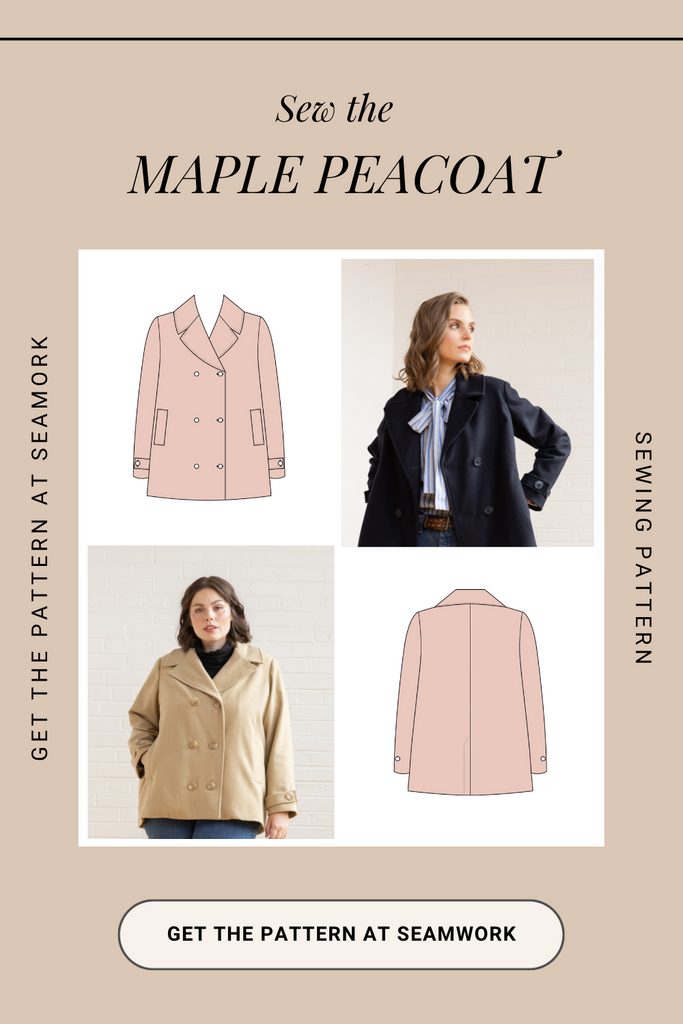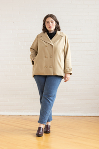 Eden is wearing the Maple coat in a size 2. We added 3/8" to the sleeve length and body length. Her measurements are bust: 34 1/4" (87 cm), waist: 25" (63.5 cm). Hip: 36 1/4" (92 cm), and she is 5' 8" (172.7 cm) tall.
