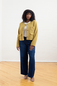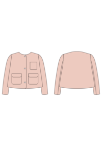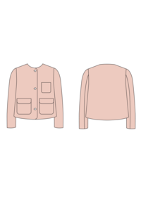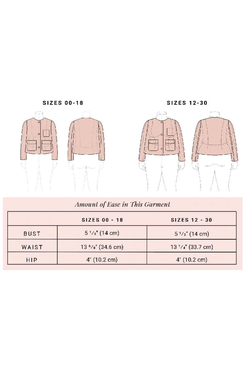 All-purpose polyester sewing thread, sewing machine needle, hand-sewing needle, three 1” (25 mm) buttons, 1 1/4 yards (1.2 meters) woven fusible interfacing, and two shoulder pads.