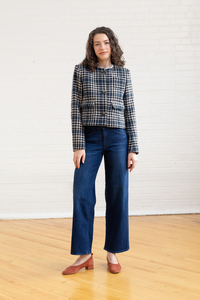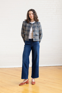 Medium to heavy weight fabrics such as tweed, boiled wool, boucle, suitings, coatings, denim, twill, quilted fabrics, brocades, and velvet.