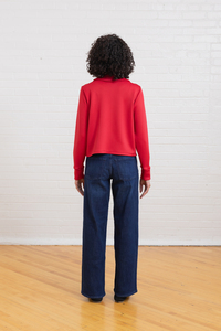 Medium weight knit fabrics with at least 20% stretch, such as French terry, sweatshirt fleece, quilted knit, ponte, double knit, and sweater knit.