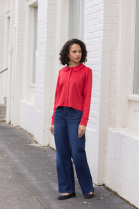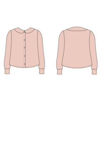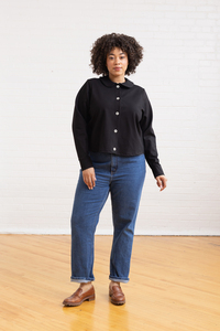 All-purpose polyester sewing thread, ballpoint sewing machine needle, ballpoint twin needle, five 7/8” (22 mm) buttons, 1/2 yard (.5 meter) light weight knit fabric, and 3/4 yard (.7 meter) fusible knit interfacing.
